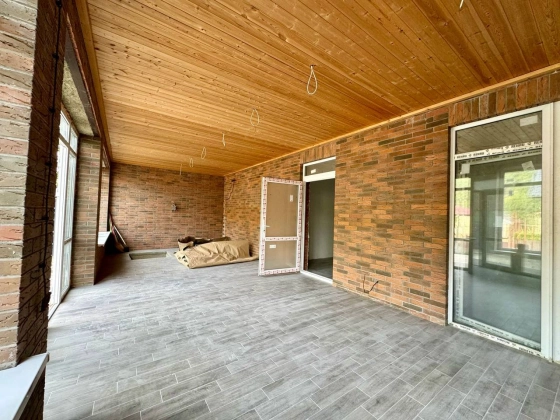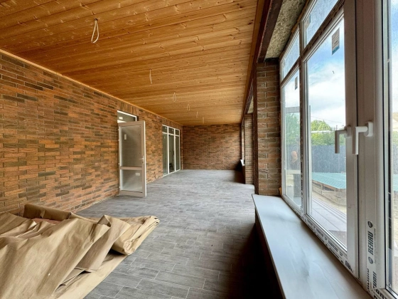 - Панорамная терраса с витражным остеклением и видом на бассейн
